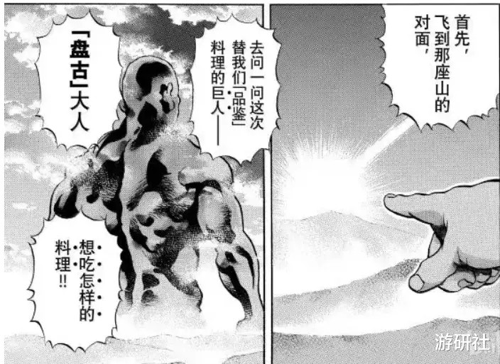 是的,这场对决的裁判正是神话里开天辟地的盘古。在上一部小当家满足皇帝的味蕾后,故事想要继续发展,自然需要做出满足神明口味的料理: