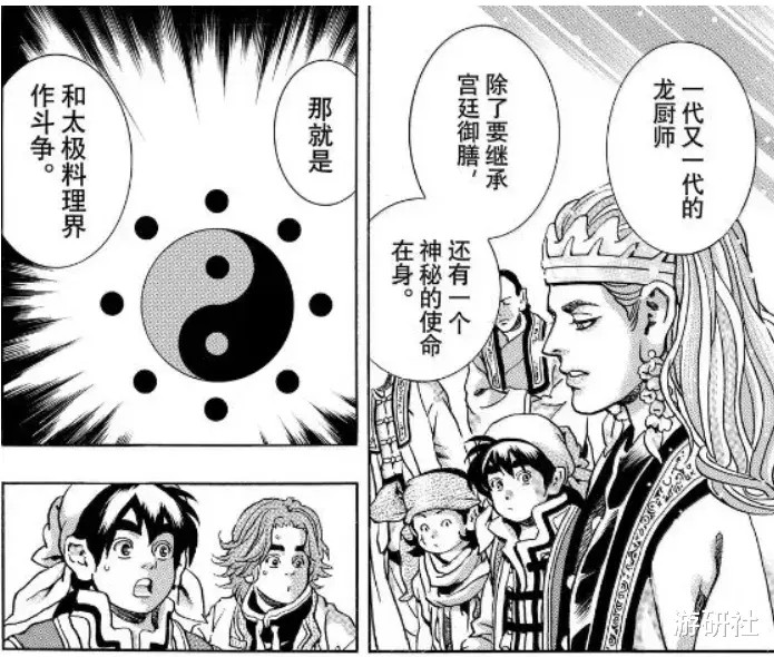 而在漫画剧情里,虽然少了主角的戏份,但其他主要人物的故事依旧在继续,如今故事的主线,已经变成了追查小当家亲生父亲,前黑暗料理界厨师玛琉的阶段,已经整出了类似星战的“反派血统论”。
