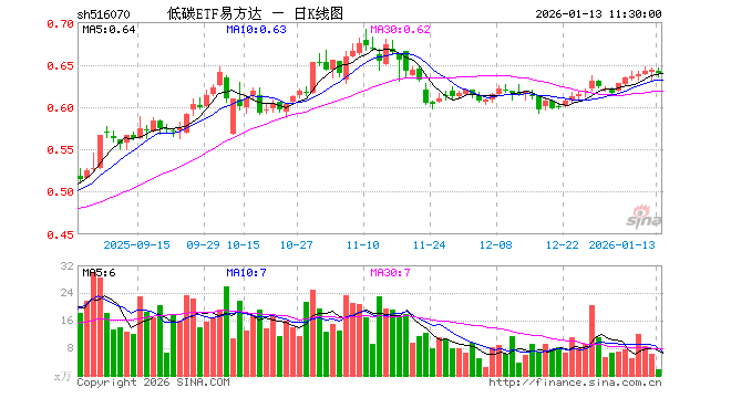 1月13日,截止午间收盘,低碳ETF易方达(516070)跌0.62%,报0.639元,成交额111.83万元。低碳ETF易方达(516070)重仓股方面,宁德时代截止午盘涨0.24%,阳光电源跌1.76%,长江电力涨0.15%,亿纬锂能跌0.53%,隆基绿能跌3.02%,特变电工跌1.49%,开云app登录中国核电跌2.28%,先导智能涨1.17%,三峡能源涨0.72%,通威股份跌2.82%。