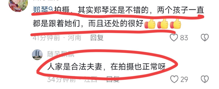 有网友说: 郑琴拍摄,其实郑琴还是不错的,两个孩子一直都是跟着她们,而且还处的很好