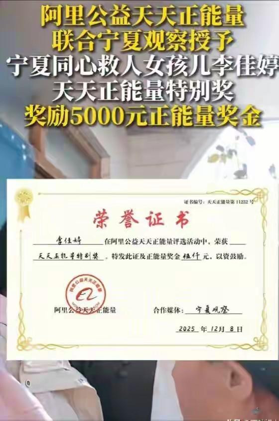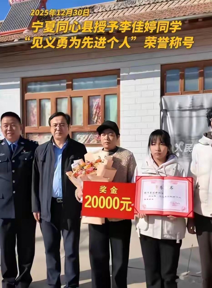 2025年12月,同心县人民政府正式授予她“见义勇为先进个人”荣誉称号,并颁发证书和2万元奖金。