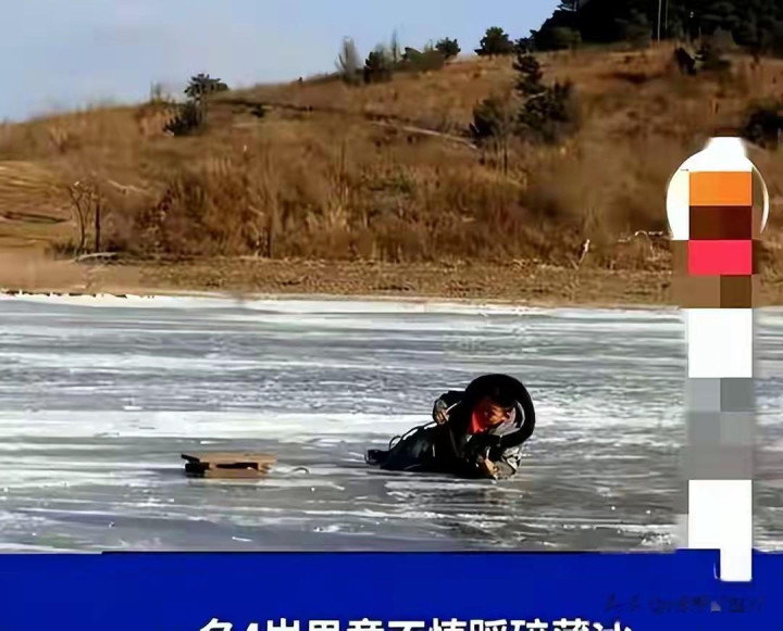 在宁夏同心县的豫海湖,一名4岁男童在冰窟窿里的挣扎与哭喊。