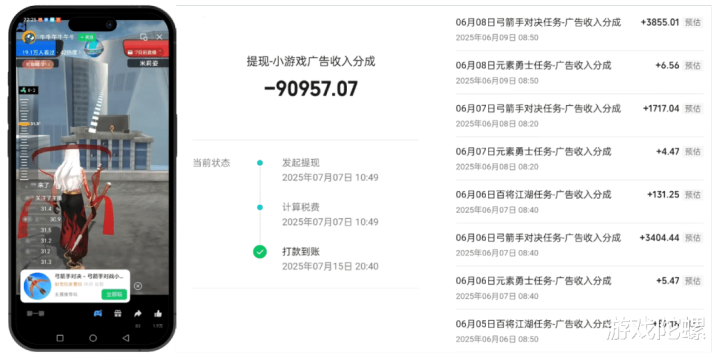 宏观方面,视频号在2025年7月推游戏任务上线后,官方推出了直播场景的流量激励和“无门槛10%流水激励”活动;在短视频方面,视频号正式上线“小游戏变现任务”,千粉创作者发布短视频也能挂链变现,部分游戏的分成比例最高能达到40%。