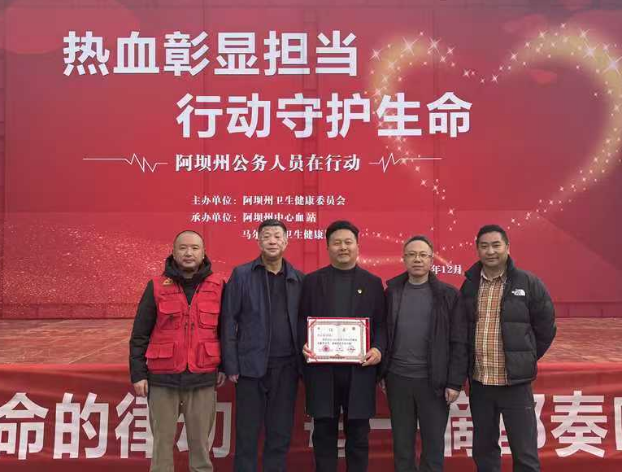人保财险四川阿坝分公司志愿者侯志荣领取“无偿献血奉献金奖”